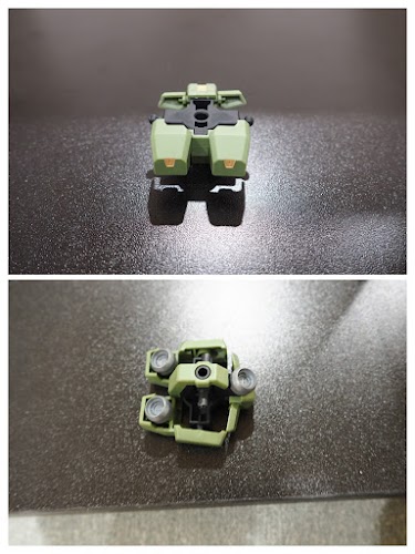The lower torso is built out of all the usual components you’d expect, but none of them look normal. For starters, the inside of the toros is made from this weird pyramid-shaped part: