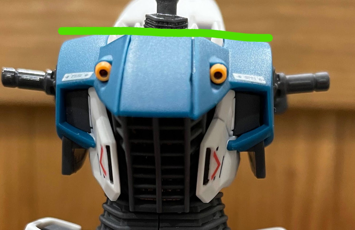 At some point, I came across an illustration of the mobile suit that suggested that, in fact, the vents on the skirt armor are not supposed to be yellow, but rather grey, with a very tiny yellow tint around the edges. In the end, this was the look I aimed for, and at the time I was happy with it. But looking at it now, it’s pretty dire: